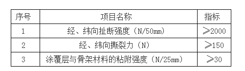 2、涂覆布的物理機(jī)械性能如表所示: