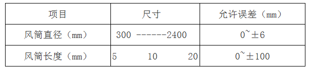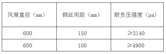 四、風(fēng)筒耐負(fù)壓性能 風(fēng)筒進(jìn)行耐負(fù)壓試驗(yàn)時(shí),其值應(yīng)符合下表: